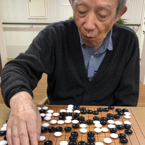 現在ではアルツハイマー型認知症であっても、囲碁などをを介した自発的なコミュニケーションが他者とも可能となり、杖なしで近くのコンビニまで好きなどら焼きを買いにいけるようになりました。生活する施設においても、スタッフから「認知症の人」という立場にならないように、リハビリ内でできる活動を伝達し、施設での生活でもできるように繋げ、施設のスタッフともより良い関係性が構築できるよう支援しました。今では、麻雀やボッチャにも最年長の戦力として参加できるようになりました。